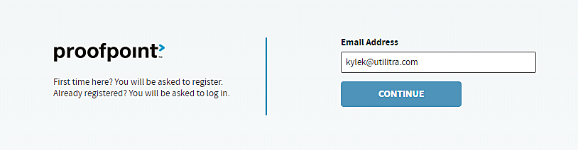 Once they select the link they will be directed to Proofpoint where they will enter their email address and select CONTINUE.
