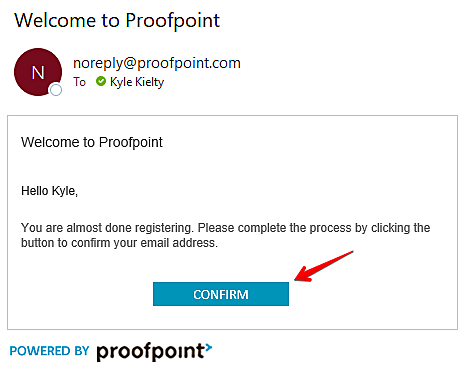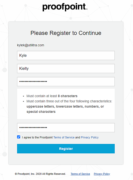 If they have not created an account with Proofpoint previously they will be directed to the registration page where they will complete the registration form and select REGISTER.