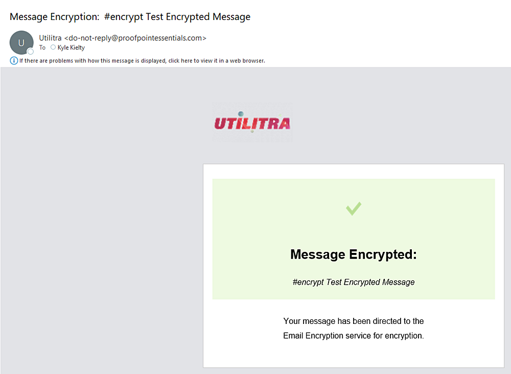 You will receive a confirmation email from Proofpoint once the email has passed through their system and encryption has been applied. Your business logo will appear here.