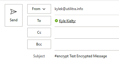 Place the keyword #encrypt in the Subject line of the email. It is not case sensitive so any variation will work (e.g. #encrypt, #Encrypt, #ENCRYPT).
