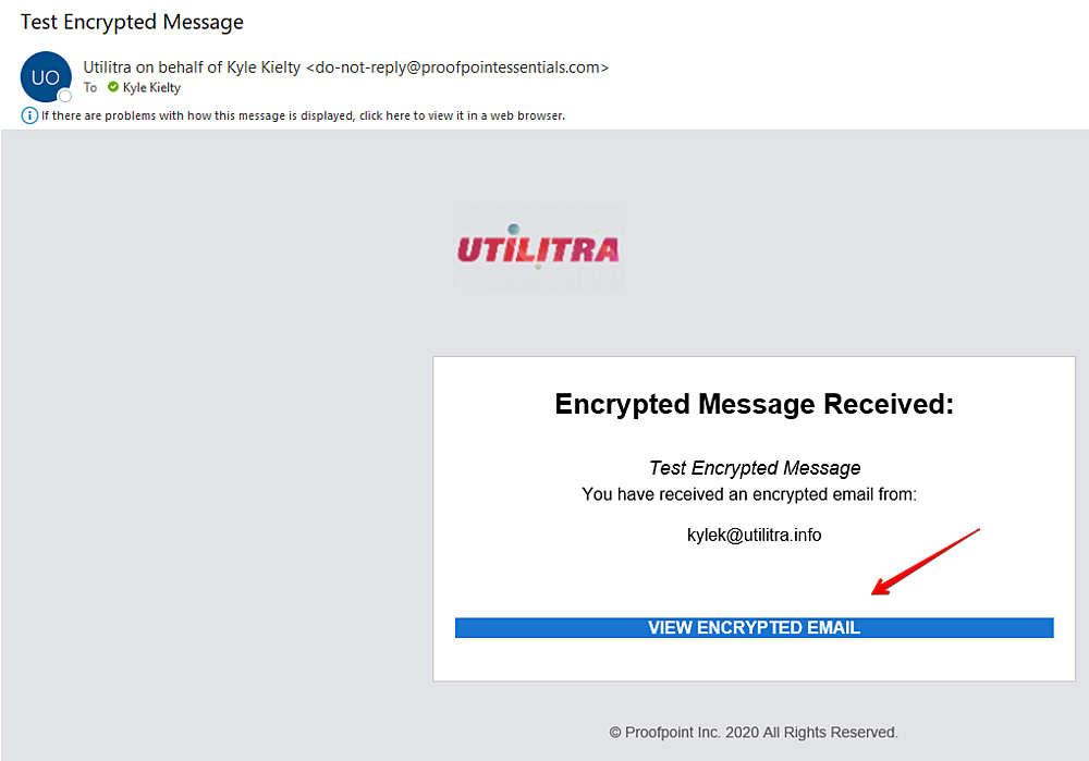 The recipient will receive a link with the option to VIEW ENCRYPTED EMAIL.