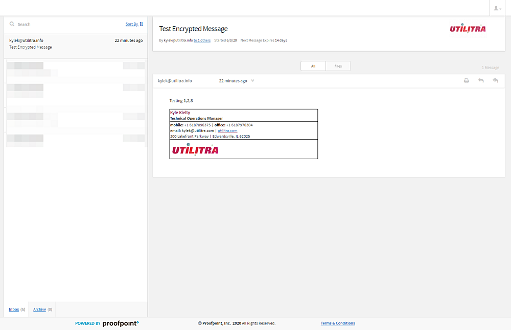 Once logged in the recipient will be able to view sent messages, download sent files, and respond all from Proofpoint's encrypted portal.